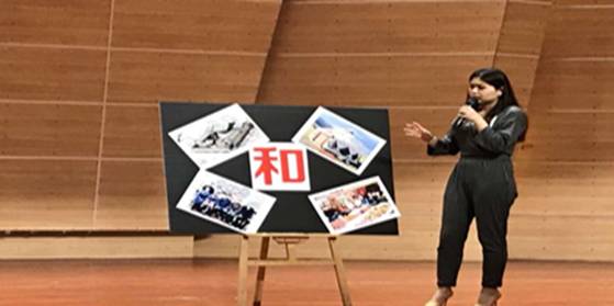 哈萨克斯坦籍选手AYATBEK NAGIMA 抽到的题目是“四合院”,她将四合院与哈萨克的毡房进行了比较,用四幅图(分别名为中国的四合院、四合院里的全家福、哈萨克毡房、毡房里的一家人)紧紧围绕着一个“和”字,以展板形式凸出了中国的“和”文化。汉办专家点评时说:“构思新颖、设计巧妙,凸显了中国“和”字的多重文化,让我们看到了中外文化的交流和碰撞。”我院蒙古族选手乌登格日丽用蒙语唱的一首《蒙古马》悦耳动听,受到大家的喜爱。