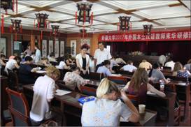 (参加2017年丝路沿线国家本土汉语教师培训的各国本土汉语教师在进行结业试讲)