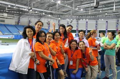 (外国本土汉语教师们在新疆冬运会场馆内合影留念)