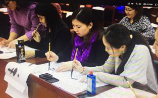 两个小时的讲座中,主讲老师邵鹏博介绍了汉字的起源和发展,阐释了汉字与书法的关系,并带领大家一起认识了解和学习使用“文房四宝”,最后指导在场中外学生完成了大家的首次书法习作。
