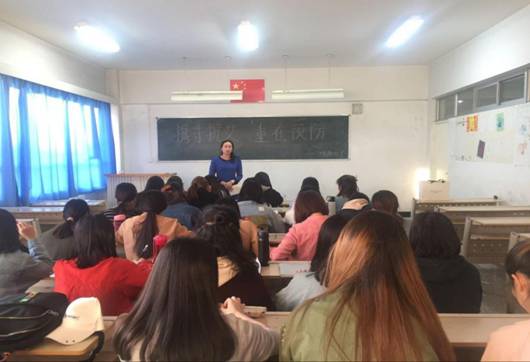 (汉语国际教育17-1班同学讨论所学内容并做问卷)
