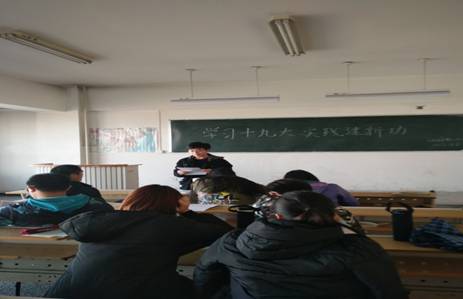 为全面贯彻落实党的十九大精神,学习习近平新时代中国特色社会主义思想,引导广大青年在实践中受教育、长才干、做贡献,以饱满积极的精神风貌迎接党的十九大开创的新时代,我院于11月10日组织各班开展《学习十九大 实践建新功》主题团课活动。