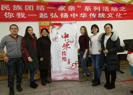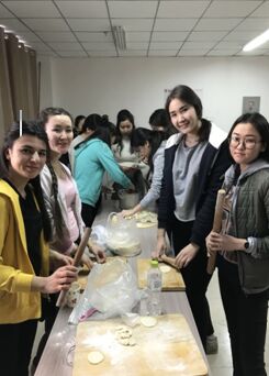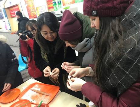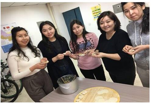 在学校组织的冬至联谊活动中,我院高雅古丽·卡德尔副院长带领这自己结对子学生汉语国际教育14-1班王亚培同学及学工办姚芸老师带领着哈萨克斯坦籍及俄罗斯籍留学生共同参与。一进入活动场所,学生们便被浓厚喜庆的冬至氛围所感染,尤其是留学生们对这种全校共庆的过节方式充满了兴趣,他们第一次动手包饺子,在高雅古丽·卡德尔副院长的指导之下,很快就学会了擀皮包饺子。结束包饺子之后,大家围坐在一起吃饺子、过冬至、看节目、做游戏,活动结束后,同学们纷纷表示,这是令人非常难忘的一天,不但学会了如何包饺子,还对冬至这一中华传统节日有了更加深入的了解。