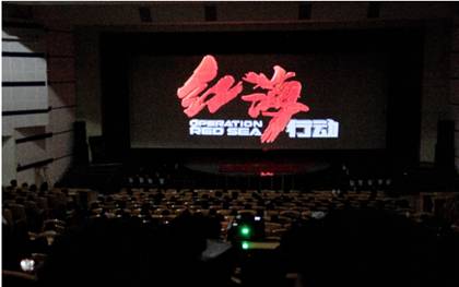 随着灯光的缓缓变暗,影片逐步拉开序幕。《红海行动》由也门撤侨事件改编而成,讲述了中国海军“蛟龙突击队”8人小组奉命执行撤侨任务,在人数及武器装备数量都远落后于敌方的情况下,数次奇袭恐怖组织。最终深入敌方以牺牲两名特战队员为代价。成功营救了被绑架的中国公民,同时粉碎了恐怖组织核战争阴谋的故事。影片写实,剧情紧凑,全体师生很快便投入观影之中。当影片中我国军人战胜敌人之时,师生们便自发报以热烈掌声;我国军人不幸牺牲之时,整个会场内又隐约响起啜泣之声。