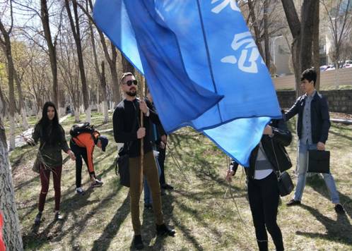 (图为汉国教17-1学生和留学生义务劳动后集体合影)